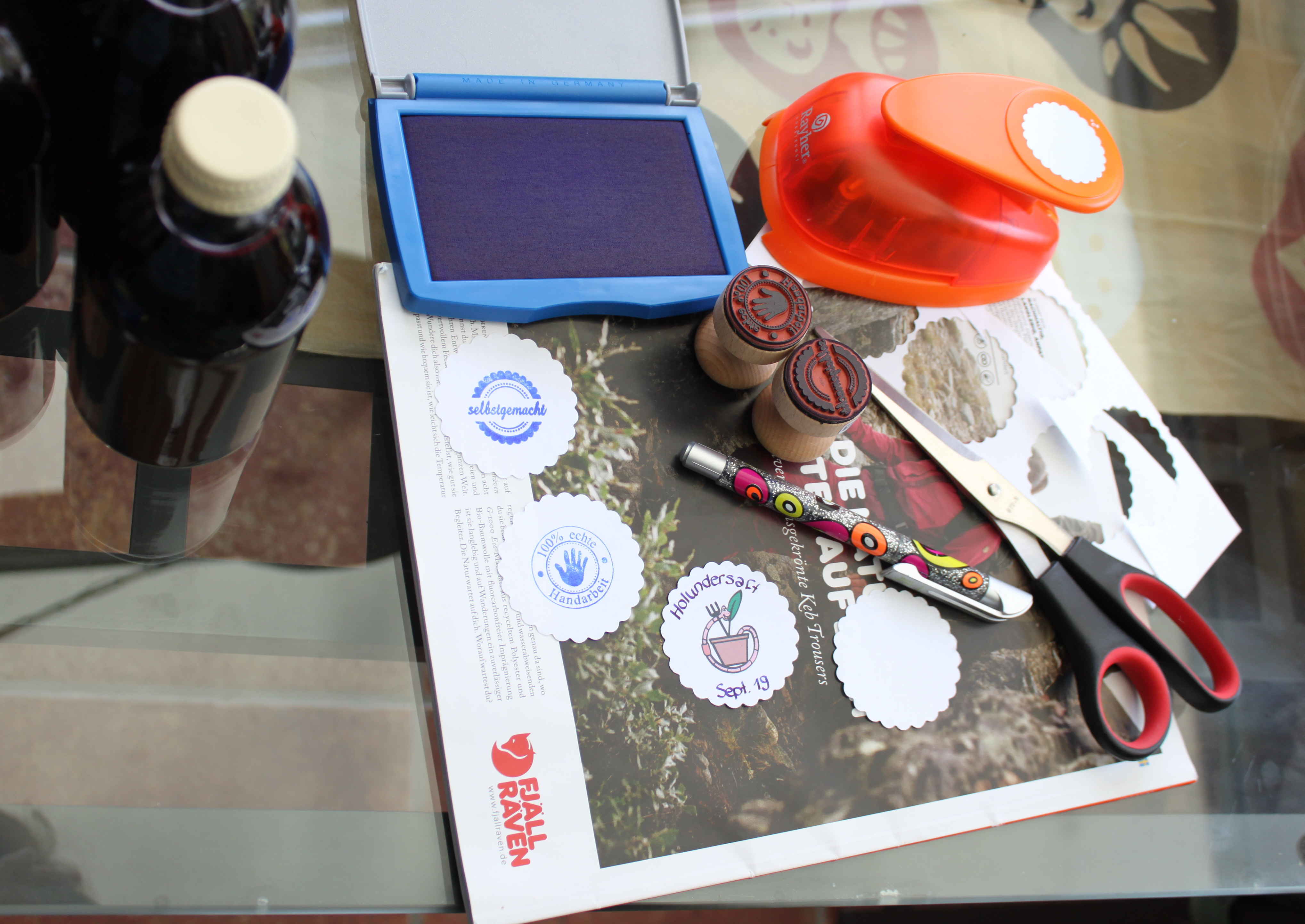 - Abschließend bringt man Etiketten mit dem Namen des Inhalts und des Afülldatum auf den Flaschen an.