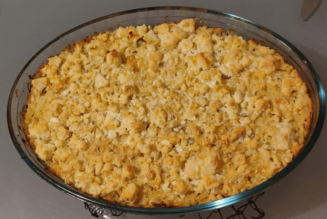 Anschließend den restlichen Feta auf dem Auflauf verteilen und diesen im Ofen überbacken.