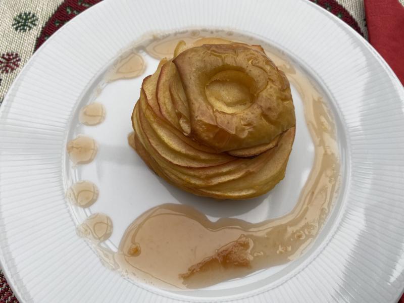 In der Adventszeit liebe ich Bratäpfel. Normalerweise werden diese, ganz traditionell mit einer Marzipan-Rosinen-Nussmischung gefüllt und dazu Vanillesoße gereicht.