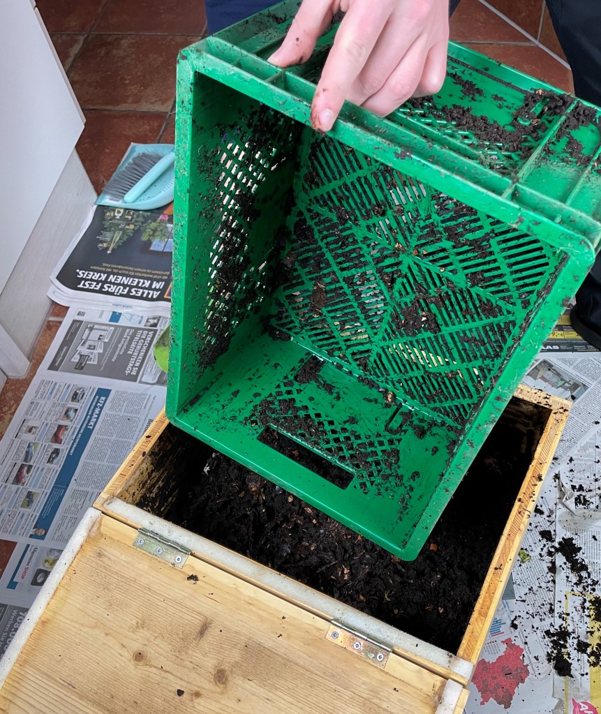 Zuerst zeigen wir Euch wie unsere Ernte ablief und dann ziehen wir ein kurzes Zwischenfazit zu unserer Wurmkiste (vor allem was man auf keinen Fall wiederholen sollte 😉 ). Falls Du neu hier bist und wissen möchtest wie wir zu unseren ca. 500 Mitbewohnern gekommen sind, klicke hier.