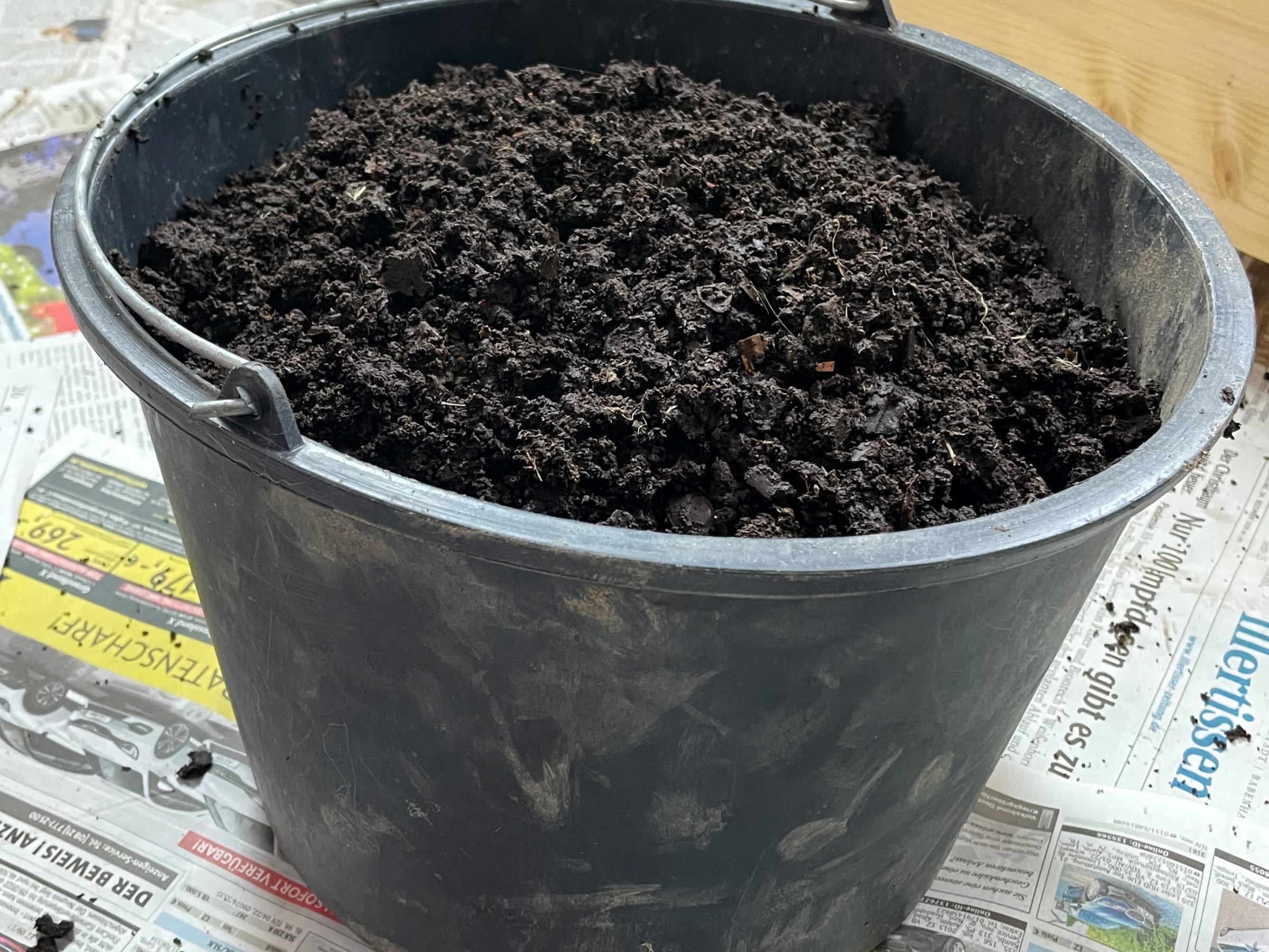 Da es aktuell sehr kalt bei uns ist (~ 0°C) haben wir uns diesmal für eine Indoor-Ernte entschieden. Bei der letzten Ernte im Mai 2020 konnten wir unsere Miete auf der Terrasse eintreiben und die heruntergefallenen Erdkrümel problemlos mit dem Besen aufkehren. Wir empfehlen Euch, falls Ihr das ganze wie wir Indoor vornehmen solltet, den Boden großflächig mit Zeitungspapier auszulegen.