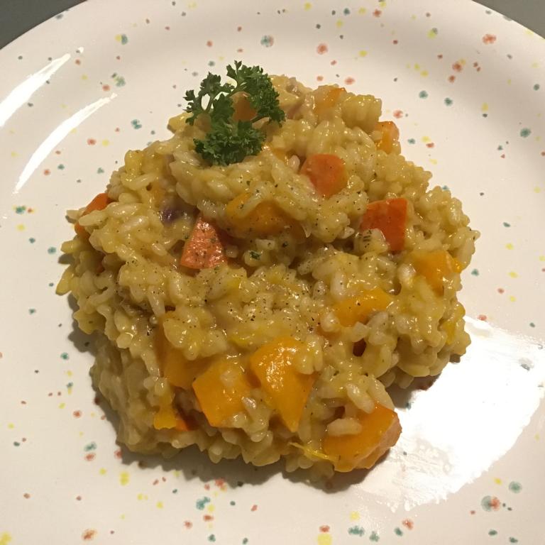 Letzte Woche haben wir, passend zu der kalten Jahreszeit, ein leckeres Kürbisrisotto gekocht.